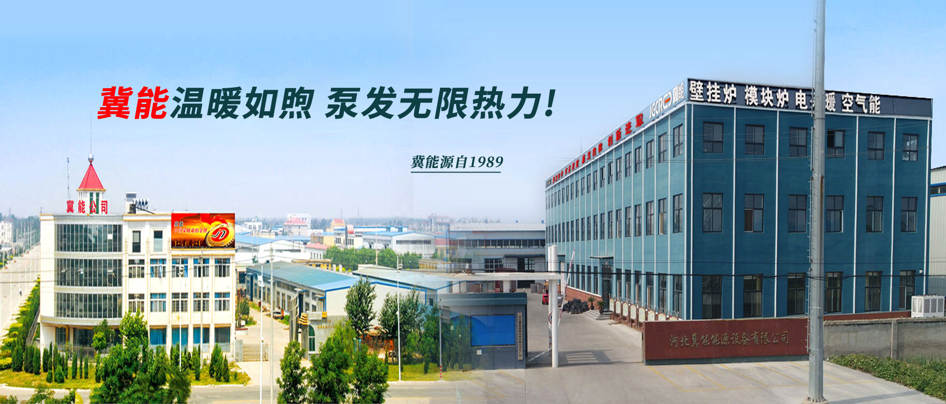 冀能主要生產高效空氣源熱泵產品、燃氣壁掛爐及鍋爐、散熱器、換熱器、新型電采暖設備